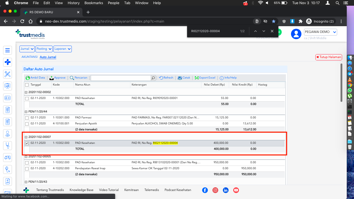 Dapat dilakukan backdate pada auto jurnal, sehingga transaksi yang menggunakan backdate dapat dilakukan overwrite data.